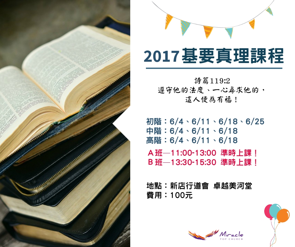 基要真理初階課程:6/4、6/11、6/18、6/25