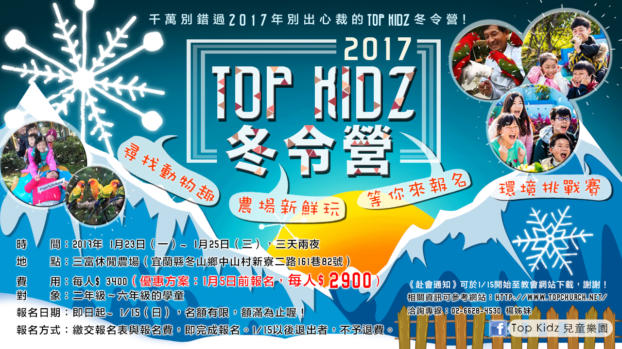 2017 Top Kidz 冬令營赴會通知