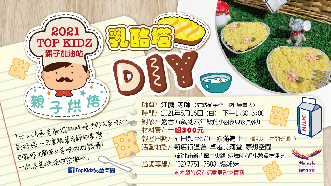 【Top Kidz親子加油站】5/16親子烘培手作 Gallery 【Top Kidz親子加油站】5/16親子烘培手作 TopKidzNews, 親子加油站 【Top Kidz親子加油站】5/16親子烘培手作 mama2021-04-25T09:33:04+08:0024 4 月, 2021|TopKidzNews, 親子加油站| 載入更多 0