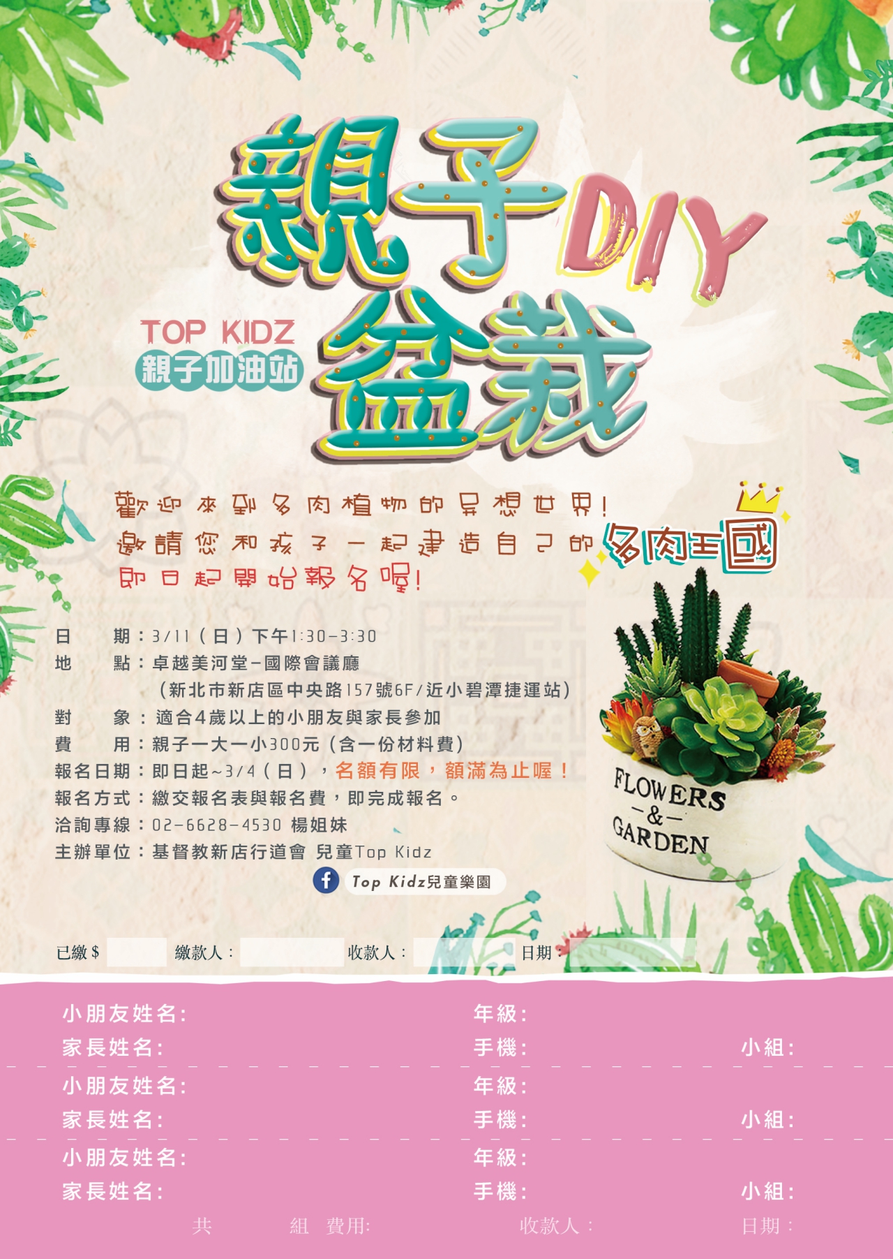 2018 親子加油站|Top Kidz親子盆栽 DIY Gallery 2018 親子加油站|Top Kidz親子盆栽 DIY TopKidzNews, 最新消息, 活動資訊, 課程報名 2018 親子加油站|Top Kidz親子盆栽 DIY tomie2018-02-23T12:10:49+08:0023 2 月, 2018|TopKidzNews, 最新消息, 活動資訊, 課程報名| 載入更多 0