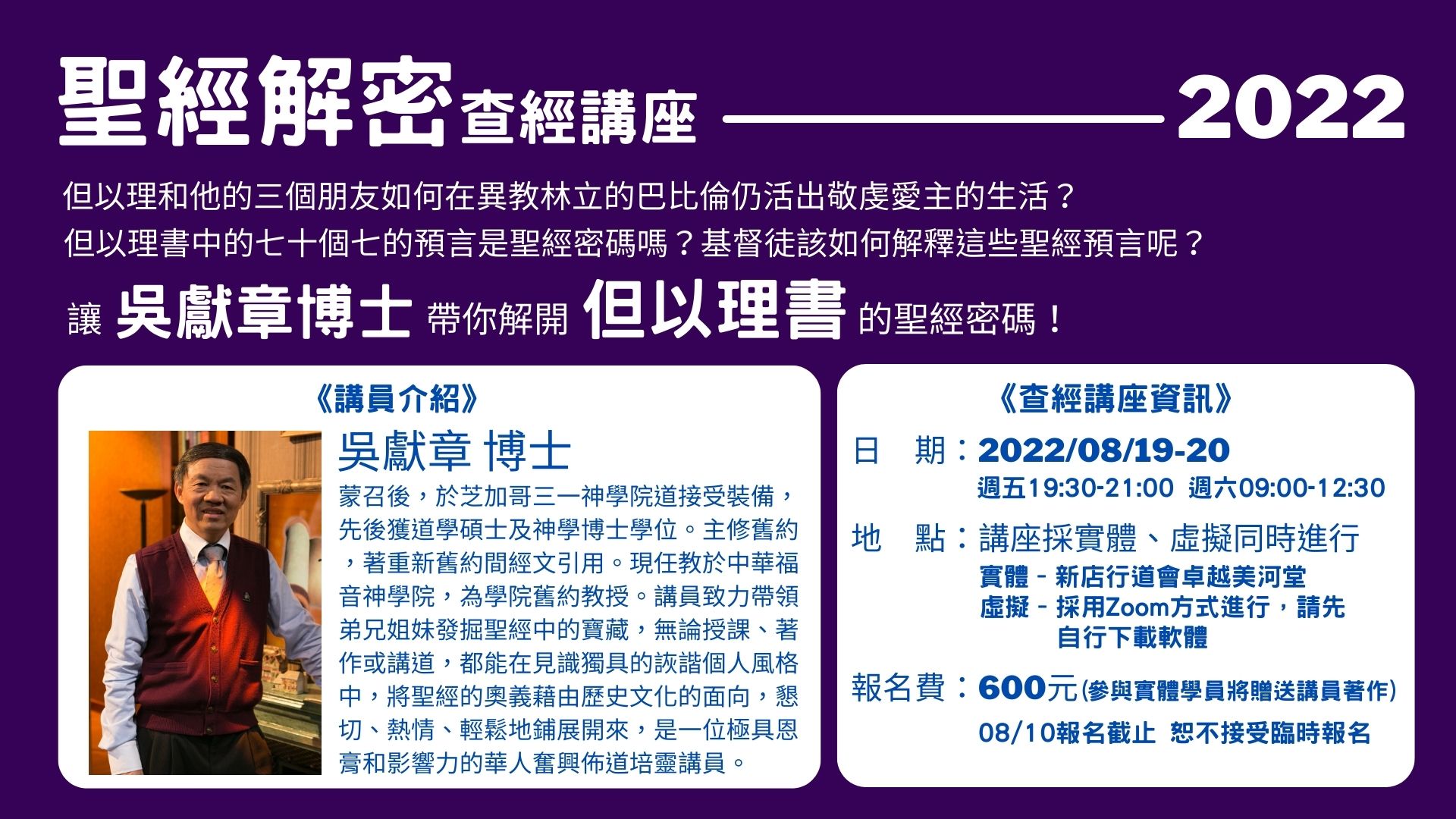 讓吳獻章博士帶你解開「但以理書」的聖經密碼!